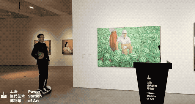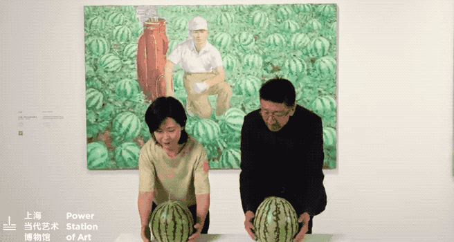 这是一次不断笑场的开幕:北京大兴西瓜和上海8424西瓜,在王兴伟和上海当代艺术博物馆馆长龚彦手中完成换瓜仪式。