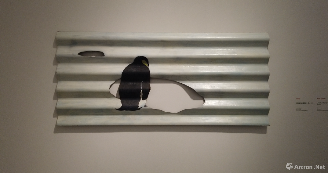 为了深入实践真实和虚拟空间的对照,王兴伟采用镂空瓦楞板的形式,用企鹅、安迪沃霍尔的花朵图像,让作品空实结合。