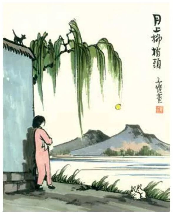 因为我的画中多杨柳,就有人说我喜欢杨柳;因为有人说我喜欢杨柳,我似觉自己真与杨柳有缘。但我也曾问心,为什么喜欢杨柳?到底与杨柳树有什么深缘?其答案了不可得。原来这完全是偶然的:昔年我住在白马湖上,看见人们 在湖边种柳,我向他们讨了一小株,种在寓屋的墙角里。因此给这屋取名为“小杨柳屋”,因此常取见惯的杨柳为画材,因此就有人说我喜欢杨柳,因此我自己似觉与杨柳有缘。假如当时人们在湖边种荆棘,也许我会给屋取名为“小荆棘屋”,而专画荆棘,成为与荆棘有缘,亦未可知。天下事往往如此。