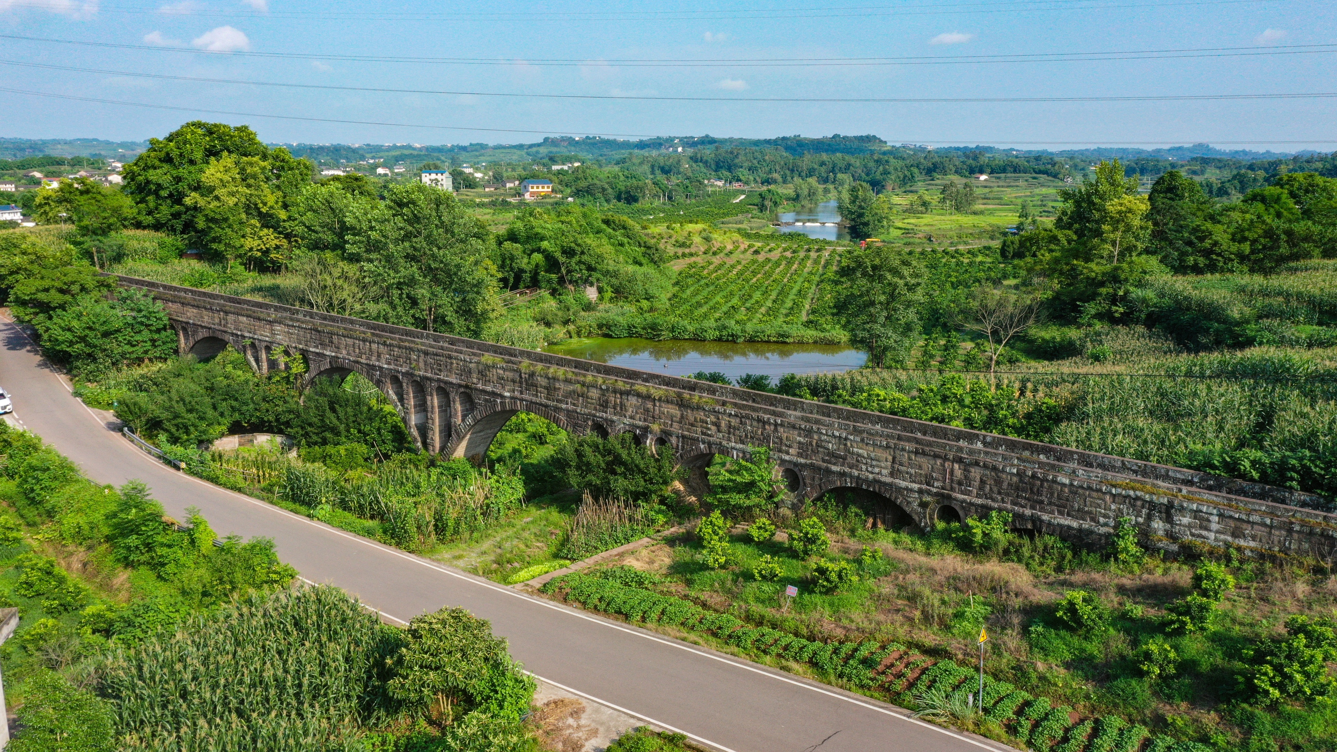 该项工程是以十座桥拱串联而成,桥身高处34.5米,低处10米左右,单跨为10米、15米、20米,三种规格以大小不一的桥拱组成,共有主拱153跨,拱肩附拱270跨,经过三年艰苦建设,三溪渡槽工程最终于1975年3月竣工。