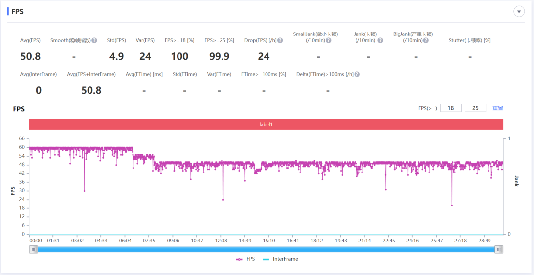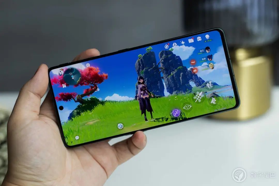 既然短时性能发挥已经有了不错的表现,我们还是来看看长时间大型游戏的具体表现。一如既往还是请出 《原神》,在开启高画质 60 帧模式下,从璃月开始往蒙德的方向跑图,路上遇到的怪都会打,素材都会收集。30 分钟的平均帧率为 50.8 帧,其中在 7 分钟前基本都可以保持 60 帧运行,在之后手机发热有所降频,但是也基本保持在 50 帧左右运行。对于这种轻薄款的旗舰手机来说,这个表现其实已经很不错了。