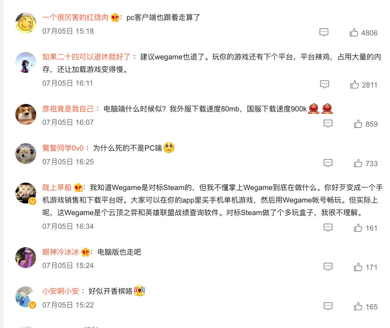 在社交平台上,掌上WeGame退市似乎并没有得到玩家的挽留,甚至有网友开始嘲讽PC端的WeGame平台,认为“应该一起关闭”。当初立志要做国内Steam的WeGame,到底怎么了?