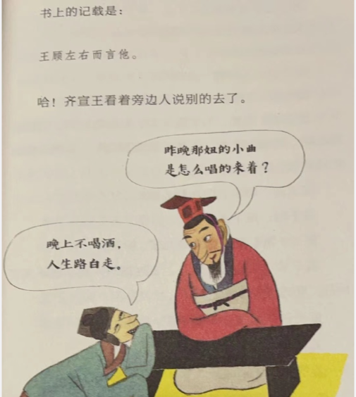 你看到齐宣王挑着眉毛问侍从:“昨晚那妞的小曲是怎么唱来着?”
