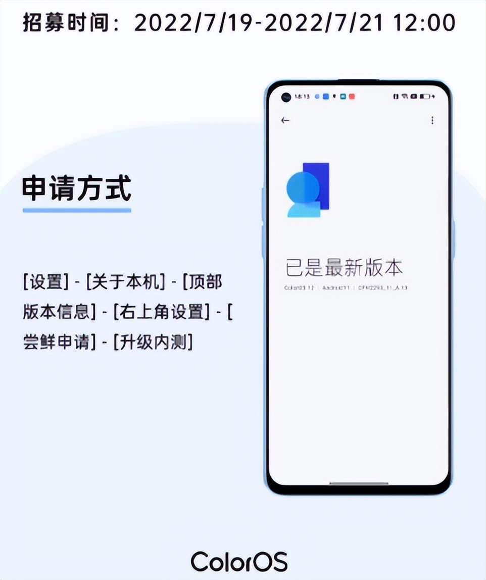 具体招募时间自7月19日开始,到7月21日12:00截止,想要尝鲜的一加 10 Pro、OPPO Find X5用户可以行动起来了,两款机型的招募人数都是1500人,预计会在招募结束后的5个工作日内分批进行审核,审核通过后,版本将会在3个工作日内分批进行推送。