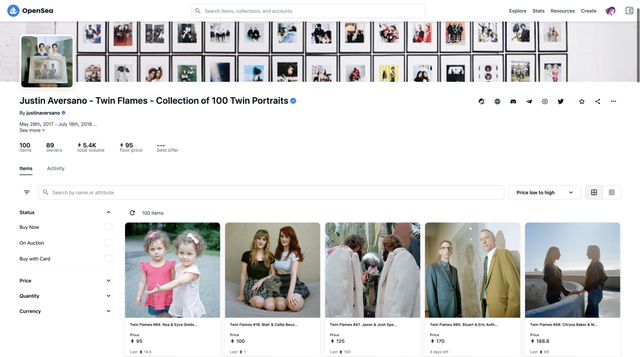 由28岁艺术家Justin Aversano创作的摄影系列Twin Flames大受欢迎,这是由100张双胞胎照片组成的集合。其中一幅作品在佳士得拍卖,最终以110万美元成交。