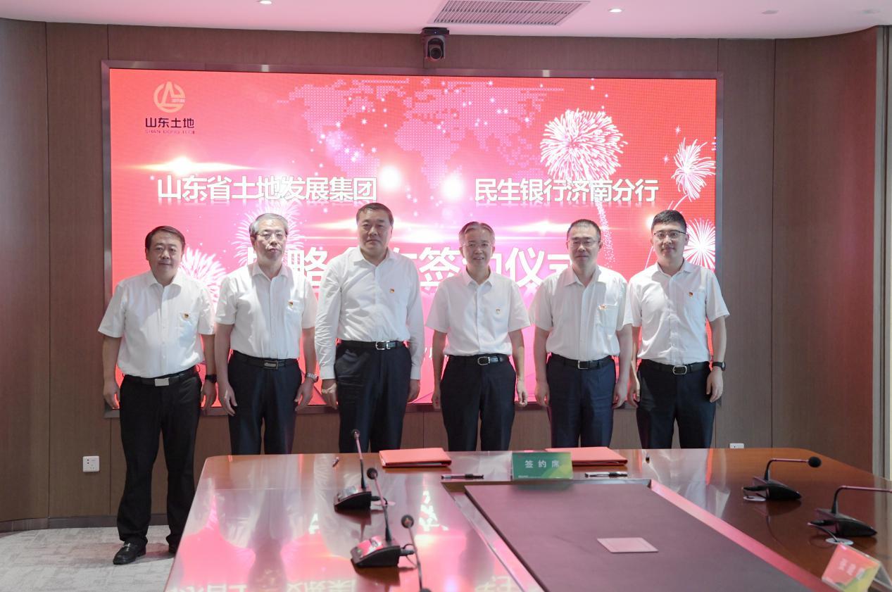 7月20日,中国民生银行济南分行(简称“民生银行济南分行”)与山东省土地发展集团有限公司(简称“山东土地集团”)战略合作签约仪式在济南举行。民生银行济南分行党委书记黄绍辉,山东土地集团党委书记、董事长展宝卫出席活动并致辞。民生银行济南分行党委委员、副行长马涛,山东土地集团党委委员、副总经理孙德亭,财务总监、外部董事郭彦光,总自然资源规划师王小葵等出席活动。