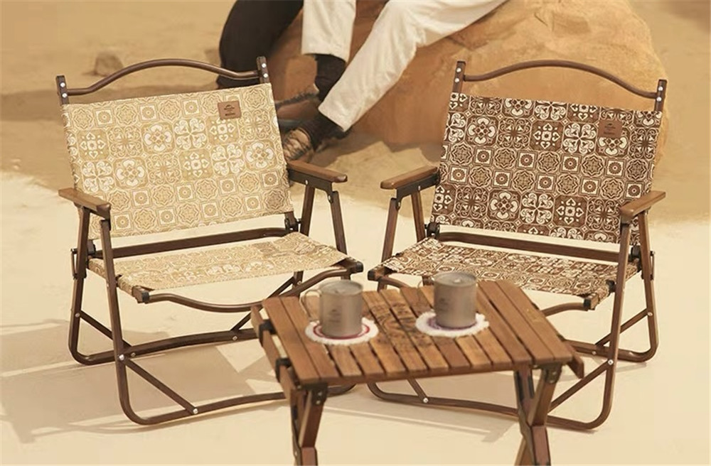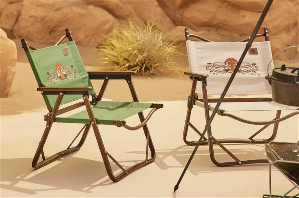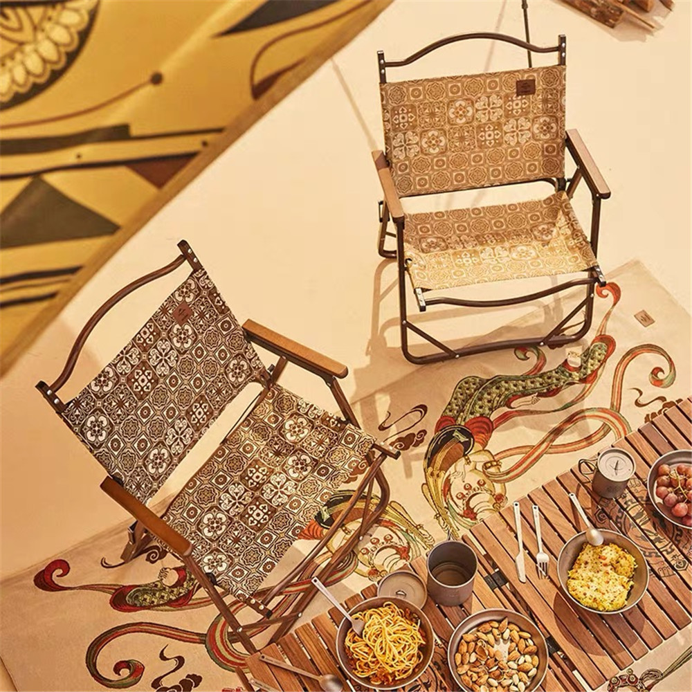 而此次敦煌博物馆丝路手信设计团队,从敦煌壁画中提炼出盛唐团花图案的精髓,应用于户外装备设计,无疑是对敦煌团花图案的一次再创作。木纹折叠椅、羊毛披毯……显得极具敦煌味道。