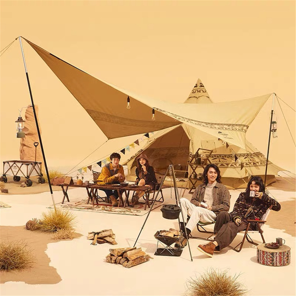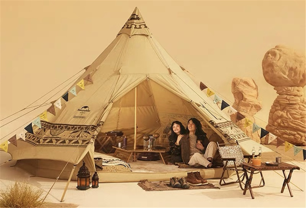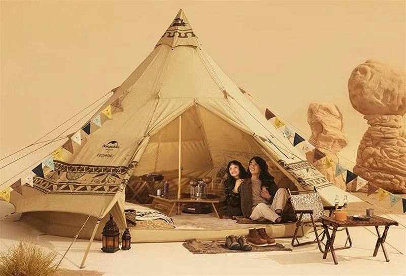 金字塔帐篷、菱形天幕、折叠蛋卷桌、木纹折叠椅、羊毛披毯、宽轮小推车……如今,敦煌博物馆紧跟户外露营国潮新时尚,将敦煌之美与现代户外装备融合,使得一款款户外产品变得“很敦煌”,也让户外露营恍若置身大漠——黄沙、红柳、胡杨、驼铃,立现眼前,这或许就是属于当代的敦煌文化潮流。