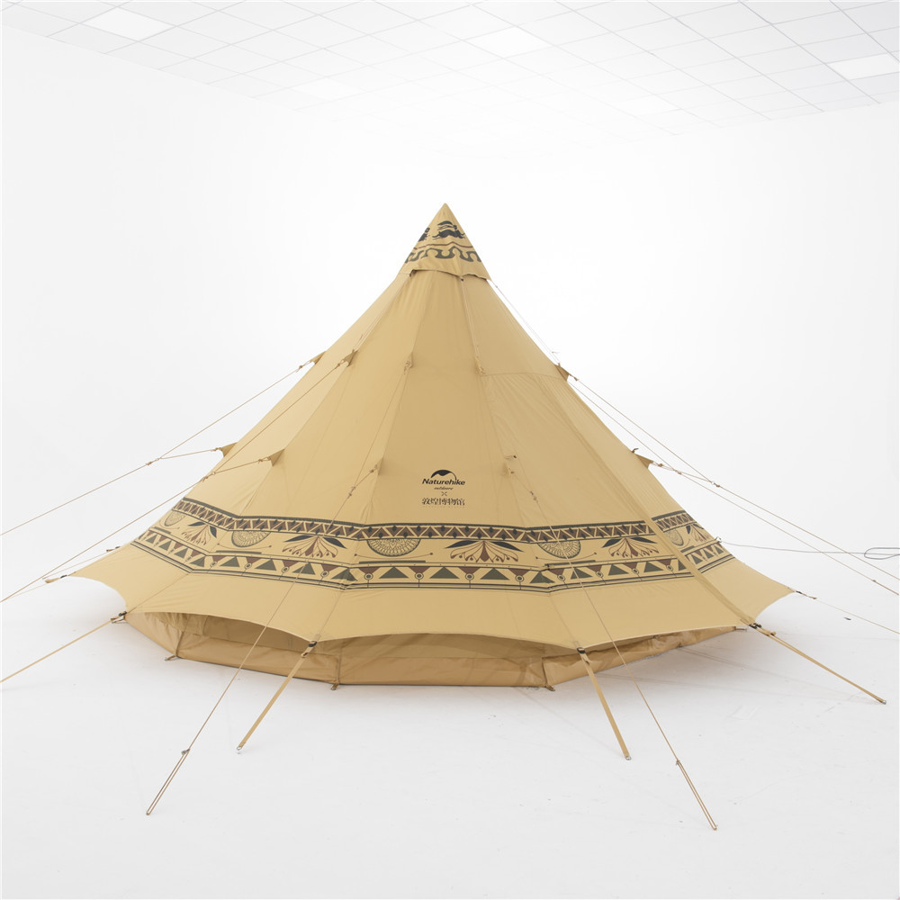 敦煌风户外装备中另一个系列的户外帐篷,整体颜色采用了具有西域风格的流沙金,腰部则印有繁复华丽,赋予敦煌异域风的纹样。纹样线条优雅,行云流水,似可感触到创意者于笔触运转间倾注其间的丰富情感。