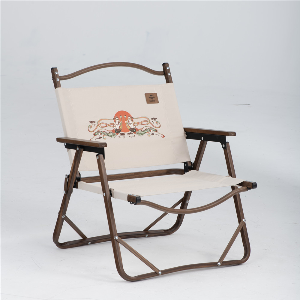 据了解,此次户外折叠椅和户外三角旗应用的“飞天”形象——将飞天柔美形态与朋克重金属风格相融合,对飞天形象进行再创造,让形态很难实际应用的飞天形象与现代生活相融,焕发出新的活力,形成极具个性的全新风格,这是敦煌博物馆丝路手信设计团队近年来研发的多款系列文创之一。此“飞天”形象寓意扶摇而上,一飞冲天,因其别具一格、充满现代感而备受年轻人喜欢。