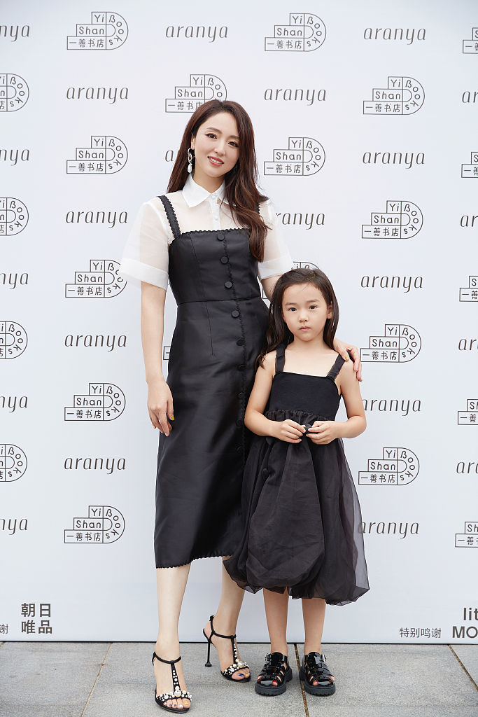 董璇带女儿穿亲子装出席活动 6岁小酒窝公主范十足
