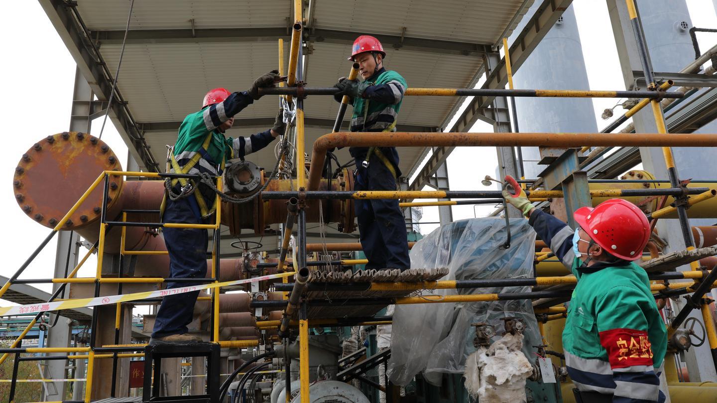持续提升羰化冶金设备保障能力,不断提升产能,有效降低成本。2021年以来,分厂在进行500多项两年三修工作的基础上,通过“跬步创新工作室”研发+员工岗位“五小”成果革新等形式,引领全员处处发力攻关解决设备保障难题,改进了转动釜翻料板和分解精馏塔、改造了循环压缩机……。同时,成立维检班,依托三级点巡检管理体系强化全员设备管理;以EAM为抓手,全力抓好设备运行、预检预修和维护保养等基础工作,强化对关键设备、关键系统的精细化管理。一年来,累计攻坚克难20多项厂级难题,为全系统高负荷稳定生产提供了保障。