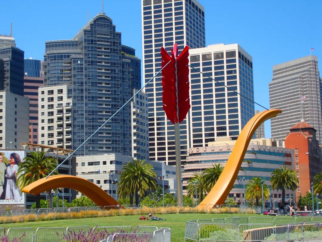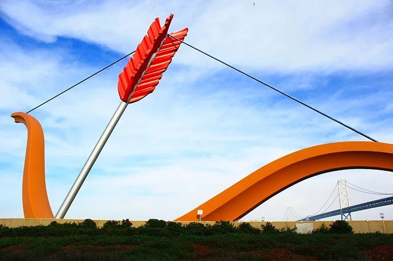 ▲ 《丘比特跨度》(Cupid’s Span),艺术家克拉斯·奥登伯格(Claes Oldenburg)与妻子库斯耶·范·布鲁根(Coosje van Bruggen)创作,位于旧金山;photo by Emily Allen via Flickr;图源hyperallergic