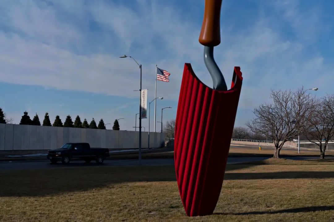 ▲ 《手铲》(Plantoir),艺术家克拉斯·奥登伯格(Claes Oldenburg)与妻子库斯耶·范·布鲁根(Coosje van Bruggen)创作于2001年;图源The New York Times