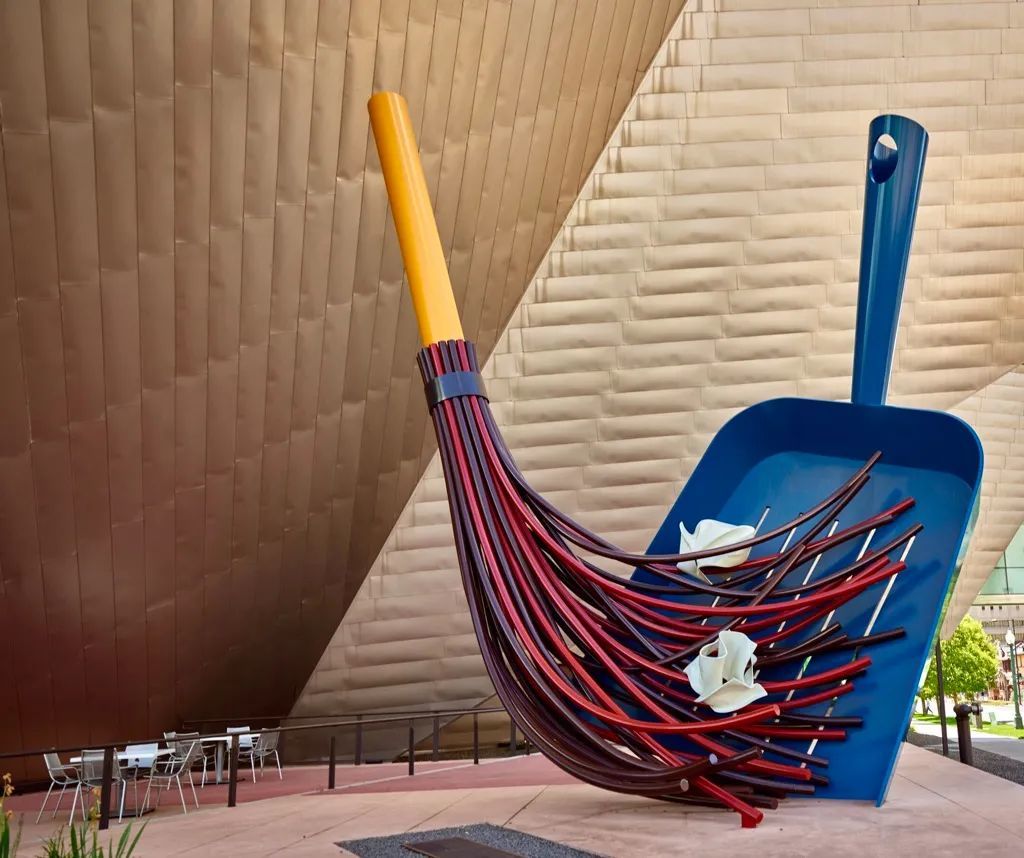 奥登伯格曾说:“在公共场所,我们的雕塑既反映了周围环境,也反映了它们的背景,但这是通过我们的想象和选择的感知——这也是它们个性化的原因。” “我们可以自由地使用所有方法:尺度、明喻、变换、广泛的材料,当然还有熟悉的物体。”