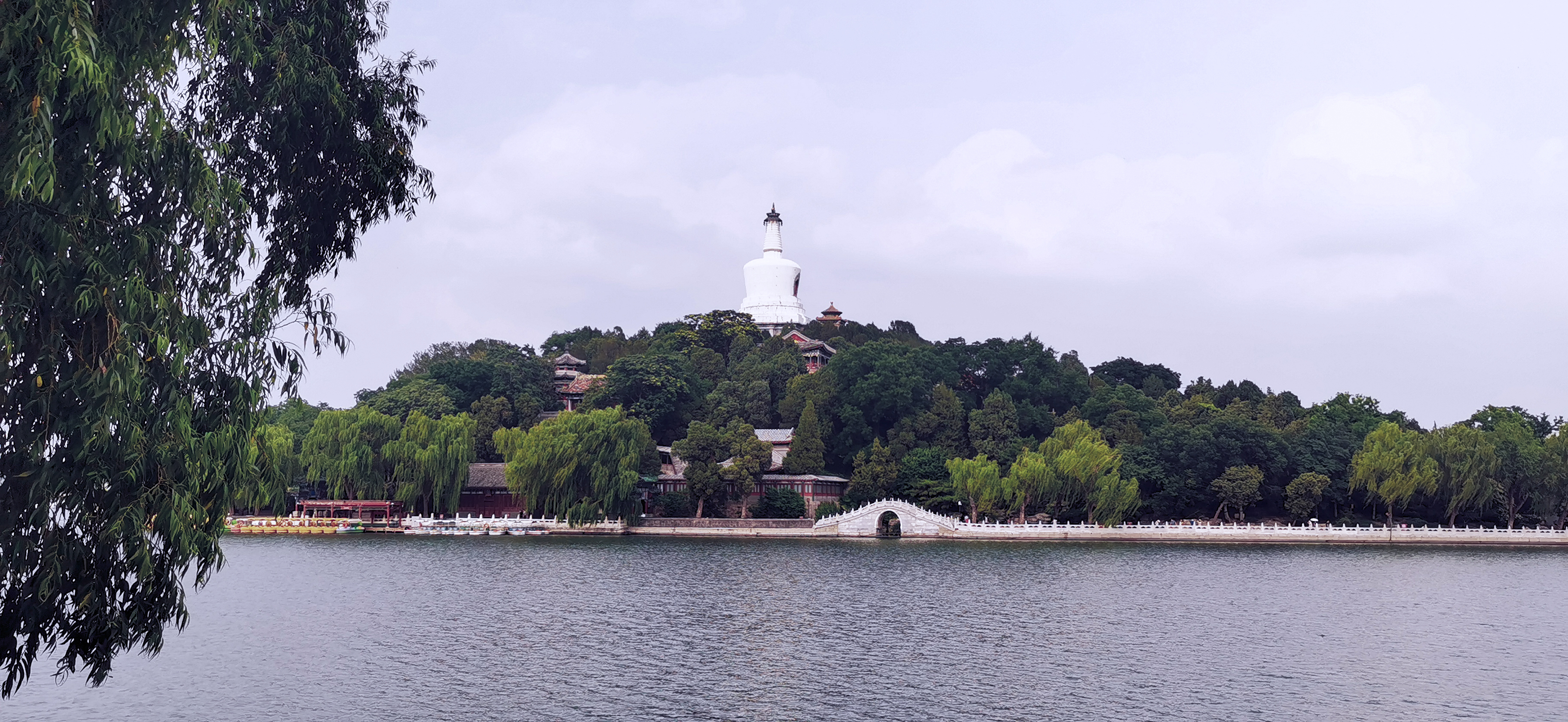 琼华岛,俗称“白塔山”,因岛上建有一座藏式喇嘛白塔,是北海的标志性景点。据建塔石碑记载,当时"有西域喇嘛者,欲以佛教阴赞皇猷,请立塔寺,寿国佑民",得到皇帝的恩准,于是修建了永安寺和白塔。