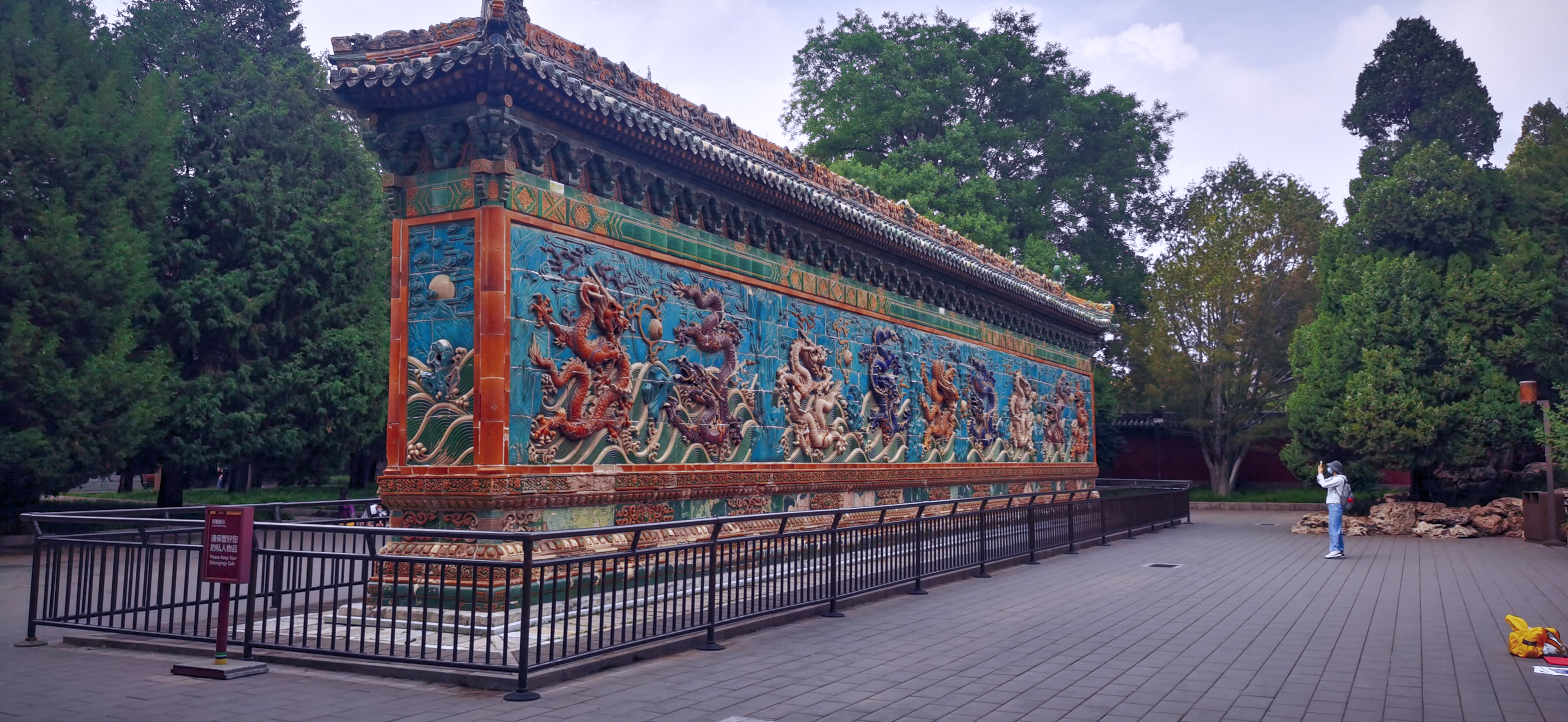 九龙壁,中国现存三座古代九龙壁,而且还是仅有的一座双面壁,壁的两面用七色琉璃砖瓦镶砌而成,两面各有九条彩色大蟠龙,共有大小蟠龙635条,飞腾戏珠于波涛云际之中。