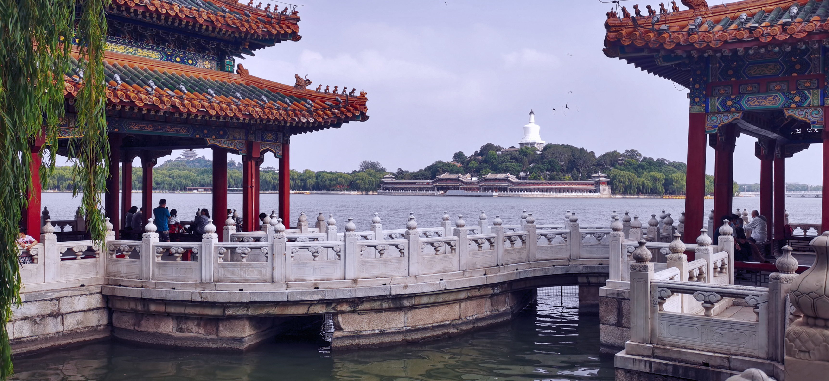 北海,北京十六景之一,中国古代皇家园林,辽、金、元在此建离宫,明、清辟为帝王御苑,1925年开放为公园。
