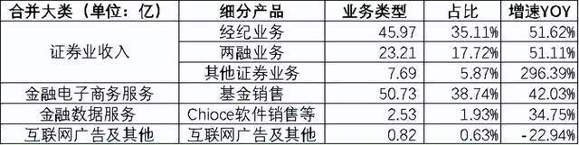 收入结构上来讲,东财与信息技术软件公司已经不太沾边了,软件销售和广告业务仅占比2.5%,而同华顺这项数据占比达到了91%。