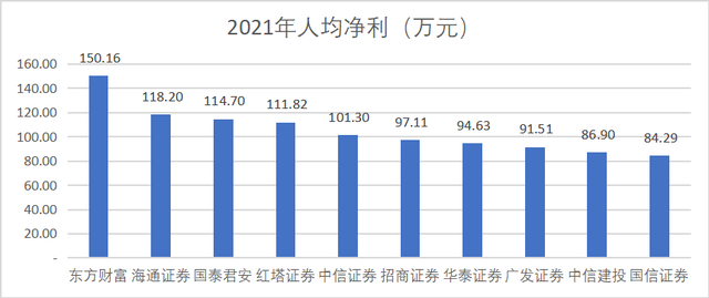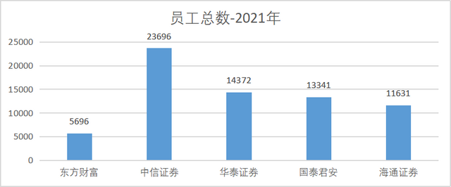 因为平台效应省去了很多地推和销售的人员成本,导致东方财富的人均盈利能力非常强。从企业披露的员工数也可以看出,东财在利用互联网流量优势保持高增速的同时,人员数仅为头部券商的一半以内。