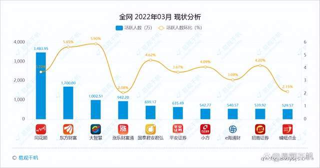 (图:2022年3月证券门户APP月活 ,来源:易观千帆)