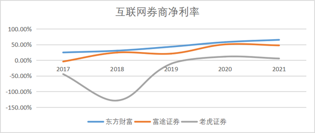 同样为互联网券商标杆的富途证券和老虎证券,分别成立于2012年和2014年。此时东财已经凭借着东方财富网积累了流量和技术储备,所以在15年后可以看出,东财的净利率水平也一直高于互联网券商同行。起步早、独享A股市场,是东财对于目前其他互联网券商的优势。