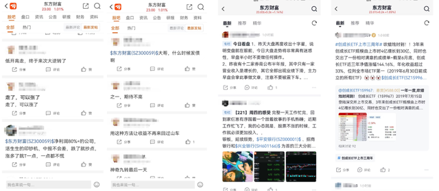 (图:评论截图,左二为东财、右二为雪球,来源:东财雪球客户端)