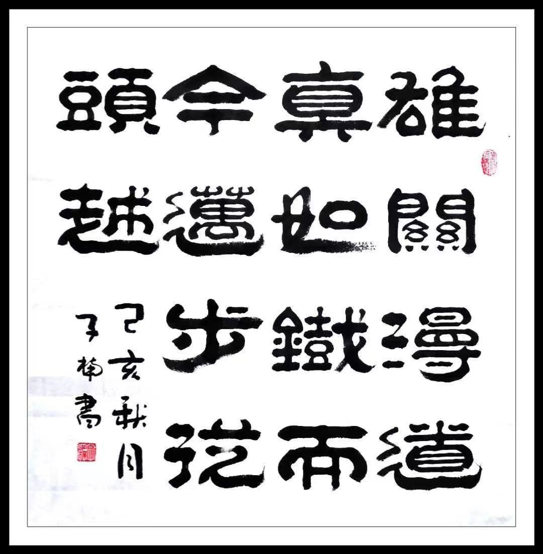 屡获国际大奖,证明了文子楠卓越的艺术水准。其书法凝重质朴、端庄浑厚,用笔老辣,圆润中不失筋骨,古拙中不乏灵动,越看越耐看,越看越有韵味。其书体形成了个性鲜明、风格独特、雅俗共赏、且具有时代美感的书法语言,受到了广大书法爱好者的喜爱。