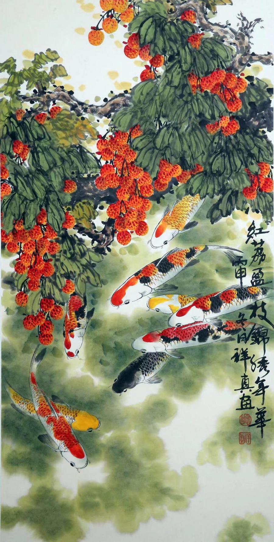 作品意境:荔枝的生命力顽强,生命周期长,且硕果累累,又有着健康富贵,大吉大利的寓意。