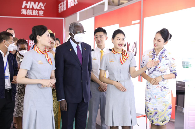 贝宁共和国驻华大使馆大使西蒙·皮埃尔·阿多维兰德在参观海航航空集团展馆时表示,他在中国坐了很多次飞机,海航是他觉得服务最好的航司。“这次来旅交会,我乘坐的就是海南航空的航班!”大使对工作人员说道。
