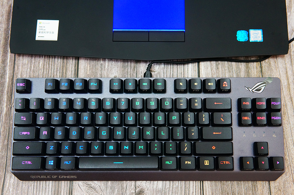 值得一提的是,ROG 游侠RX TKL支持AuraSync神光同步,作为光污染爱好者来说,这个功能可以说非常有吸引力。