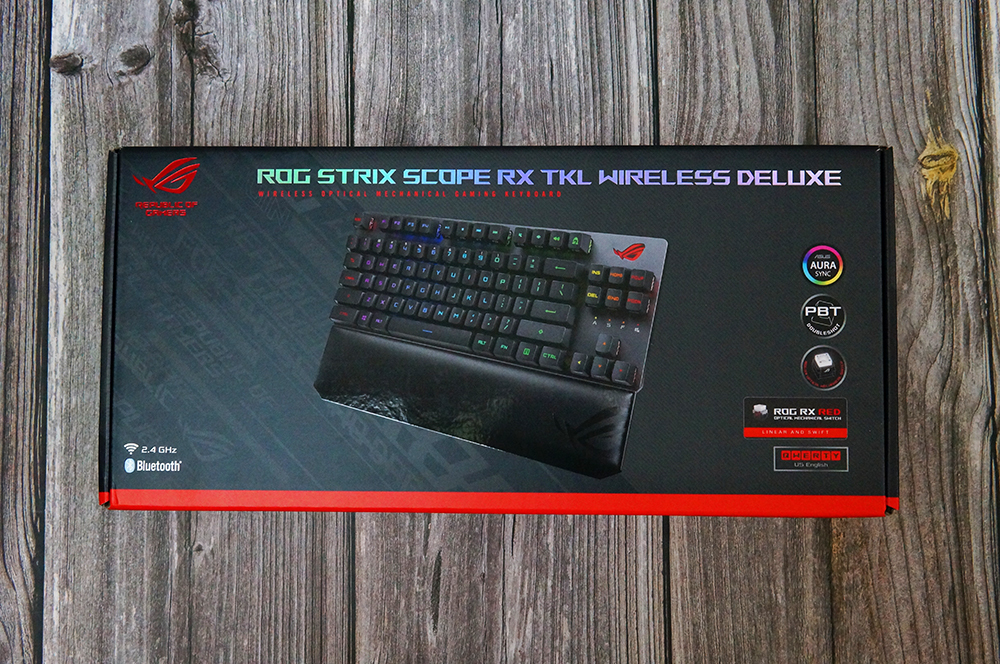 ROG的中文名为玩家国度,是华硕针对发烧级玩家打造的高端品牌,除了机械键盘,ROG还覆盖了主板、显卡、笔记本、显示器、鼠标等众多电脑组件,不过由于价格高昂,大多数人可能都是像我一样看着它默默流口水。不过这款游侠RX TKL机械键盘是ROG特意打造的千元标杆,虽说也不算便宜,但也还在我能接受的范围内。作为84键的小尺寸键盘,拿到包装的时候却感觉很有分量,而且封面上的激光字样看上去就很高端大气。