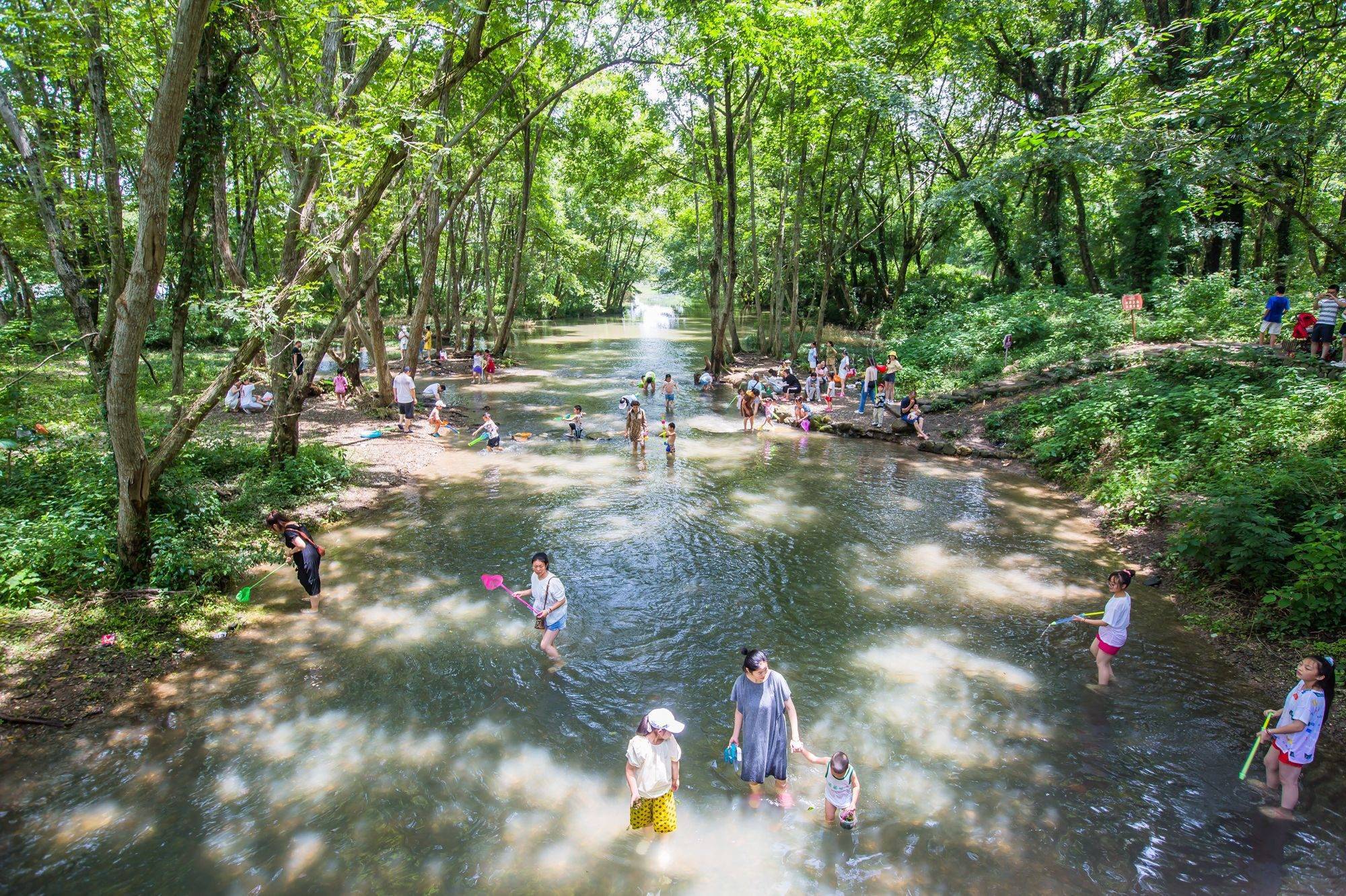 微风吹过,荡起一圈圈涟漪,啾啾鸟鸣,潺潺流水,在人们面前呈现出充满生机的夏日逐凉图。