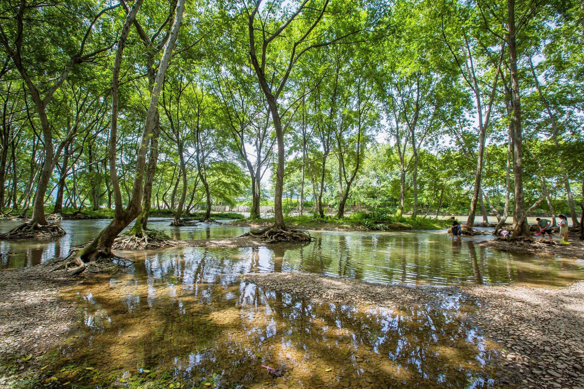 树木高大茂盛,盘根错节,千姿百态。水面清澈见底,树影婆娑,处处皆画,步步皆景,很容易就让人沉醉其中。