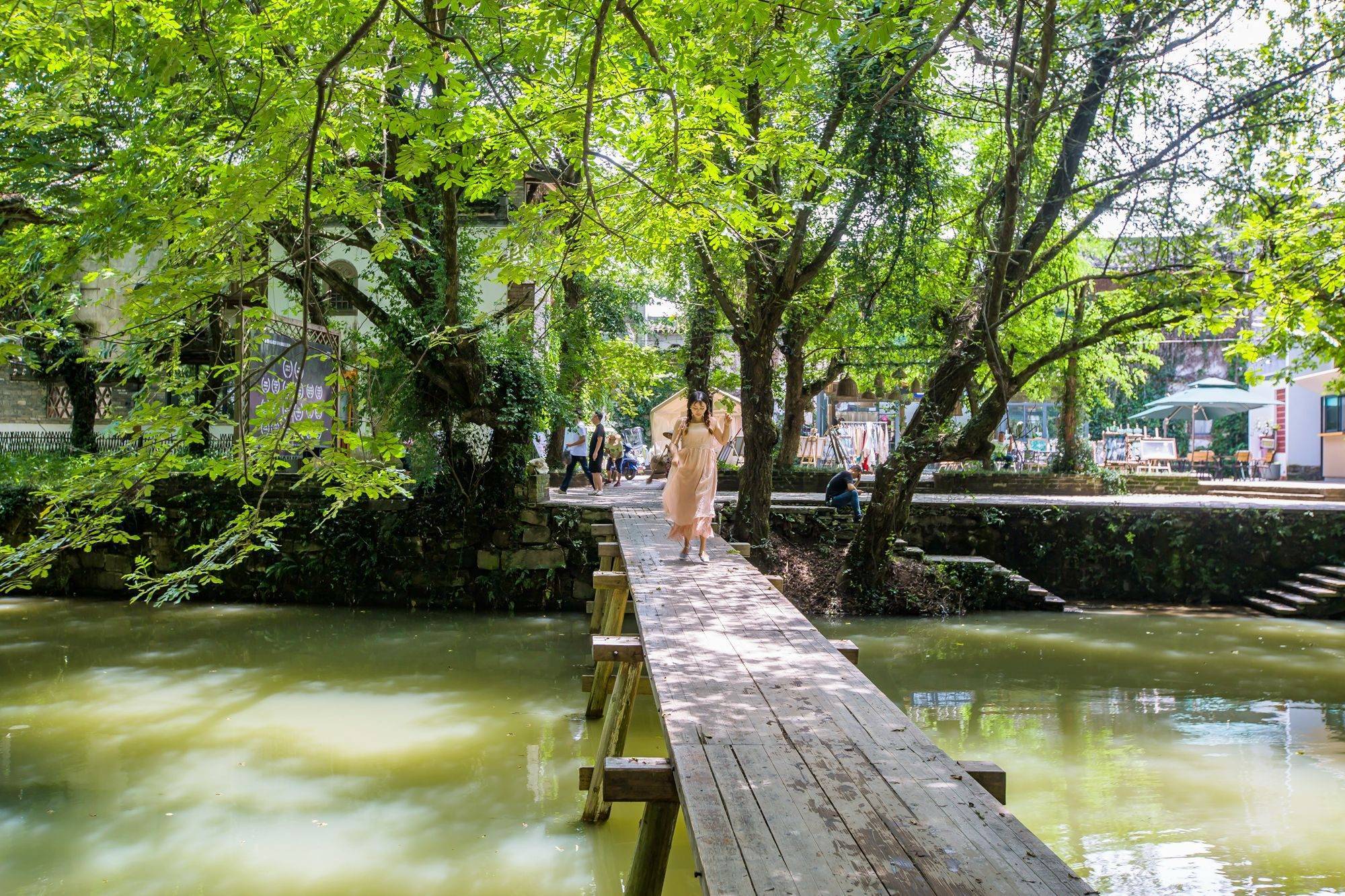 阳光明媚,光影描绘出深深浅浅的色彩,走上木桥,感受古村落中小桥流水的清新浪漫。