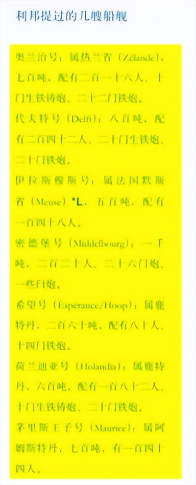 笔者尝试在荷兰东印度公司数据库(一个VOC相关资料数据网站,地址贴在参考资料了。)寻找这些船只的相关数据,可惜,不知是否是数据库不完整的缘故,只查到第一艘Groeningen号的数据,该船由阿姆斯特丹船厂制造,七百吨。而其余船只的吨位装备情况,则根据包乐史先生在利邦日志中的注释来推测。