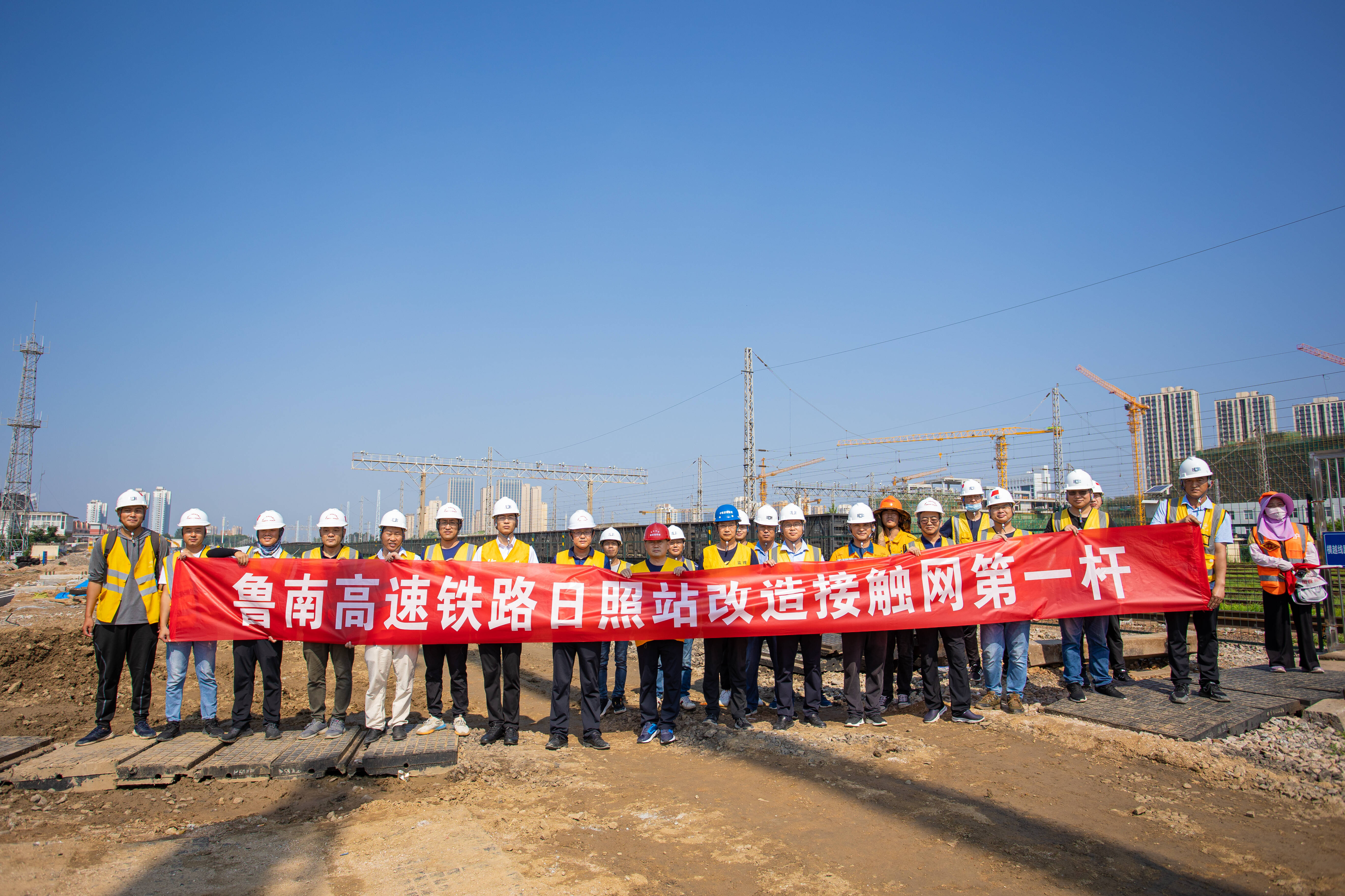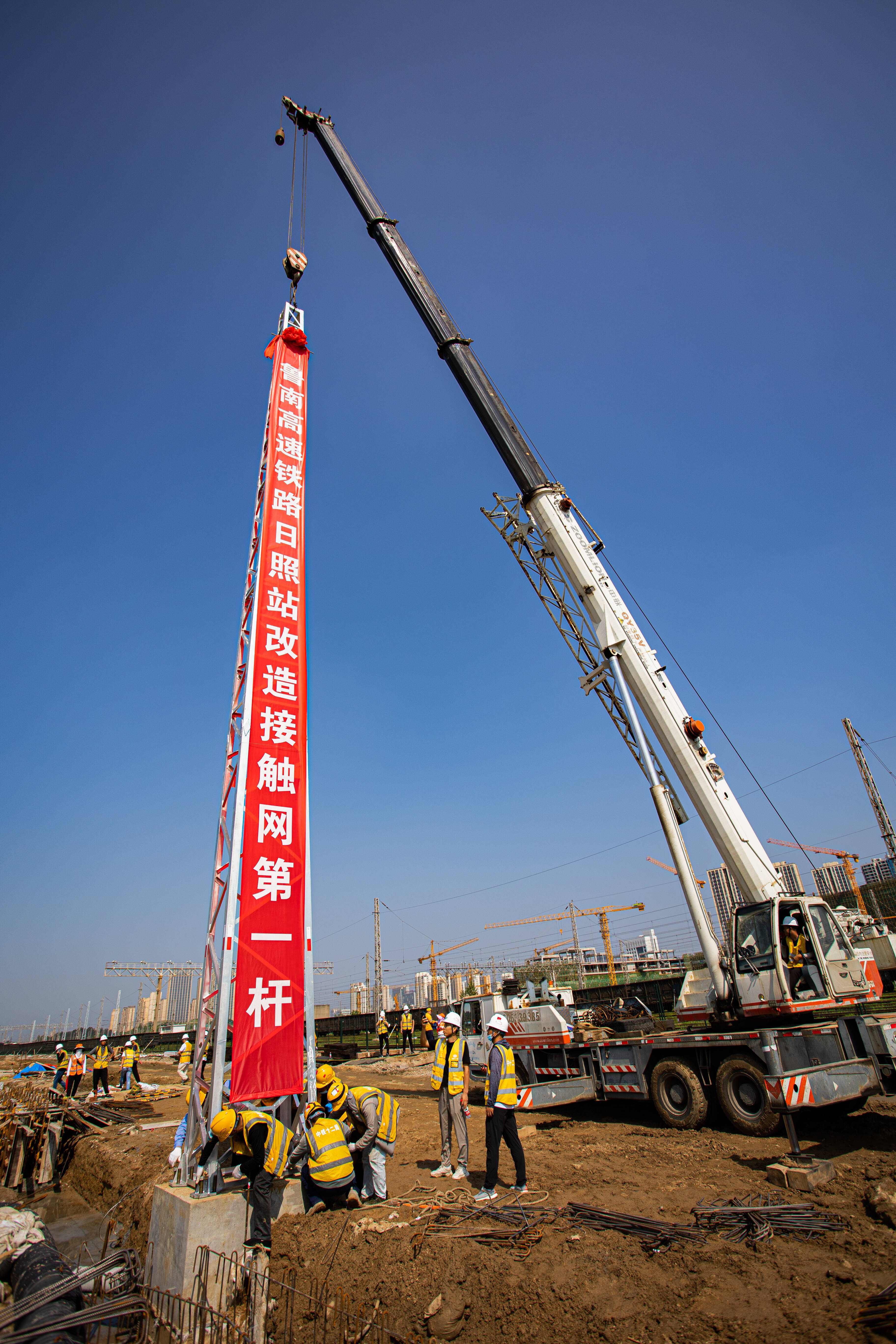 接触网立杆施工不仅标志着日照站改“四电”工程全面开工,也拉开了施工大干高潮的序目。