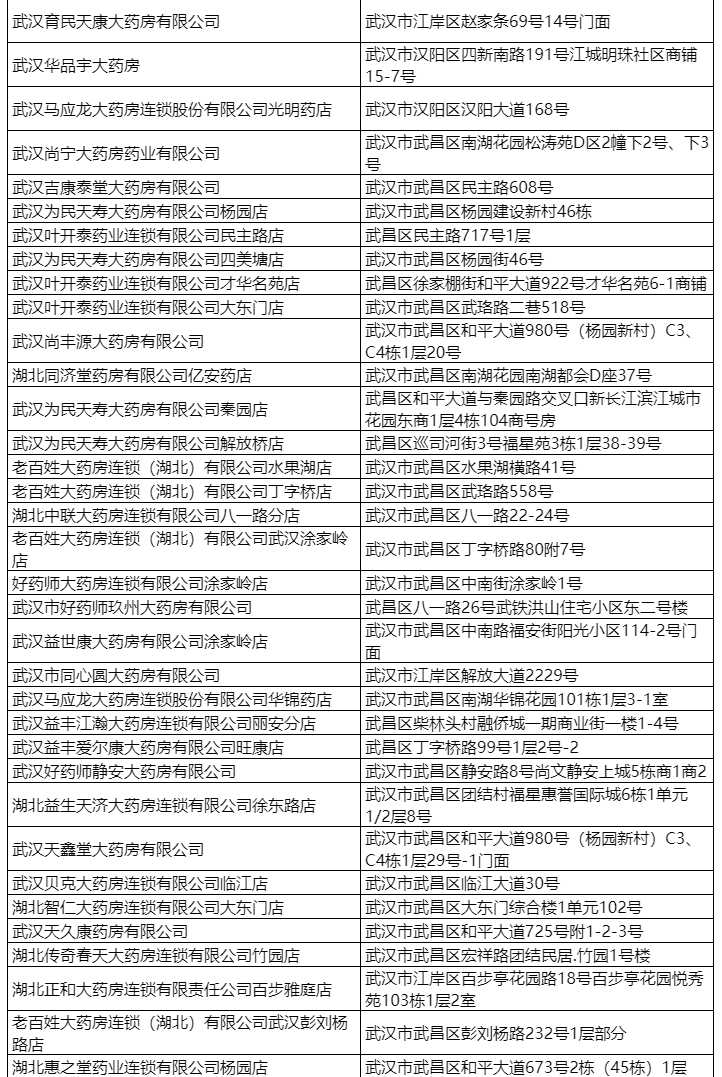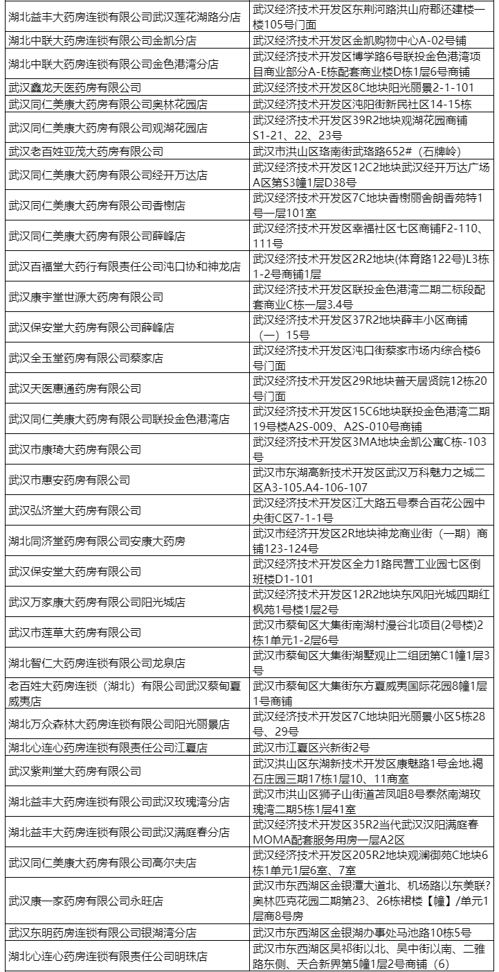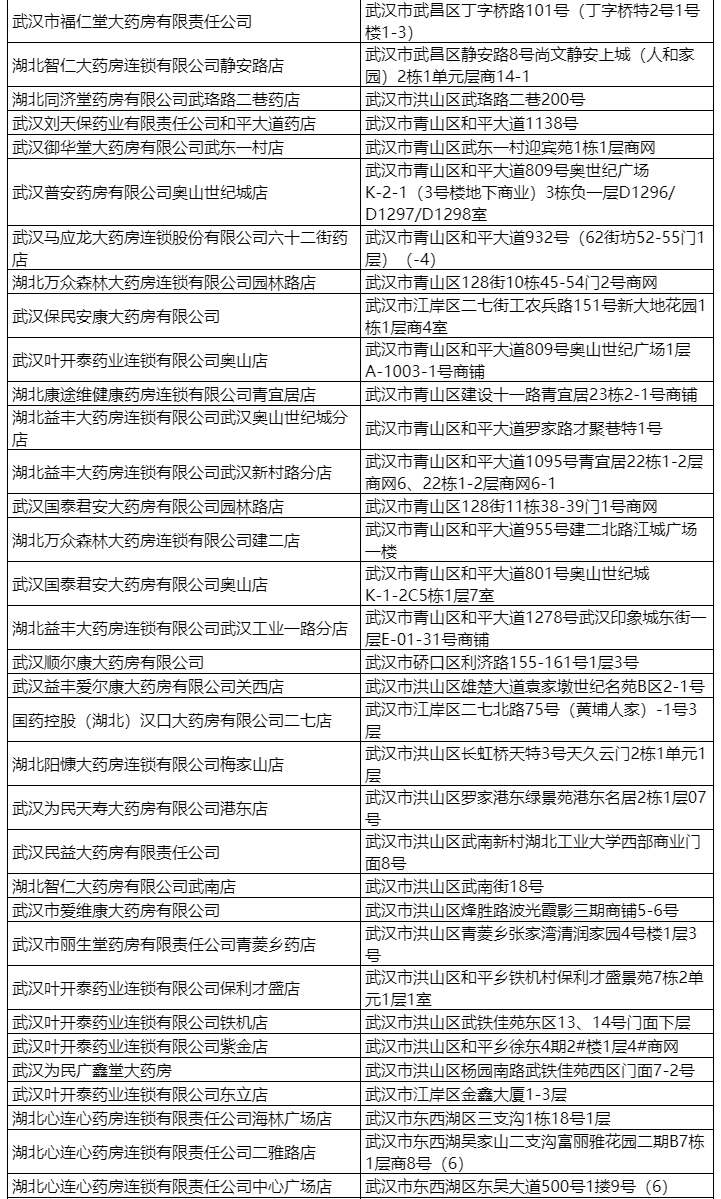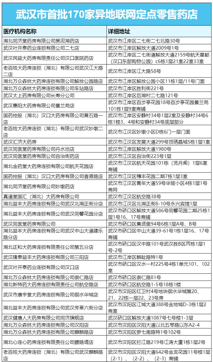 武汉市首批170家异地联网药店
