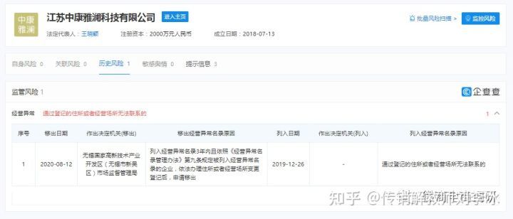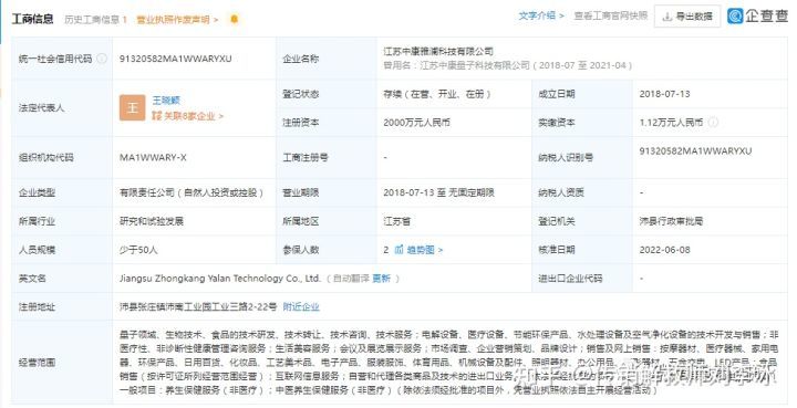 企查查APP显示,江苏中康雅澜科技有限公司成立于2018年7月13日,注册地位于沛县张庄镇沛南工业园工业三路2-22号,注册资本为2000万元,实缴资本为1.12万元,法定代表人为王晓颖。该公司由王晓颖持股50%并担任执行董事兼总经理,徐红英持股30%并担任监事,宋松山持股20%,王晓颖是该公司的实际控制人和最终受益人。该公司曾因通过登记的住所或者经营场所无法联系被列入经营异常名录。