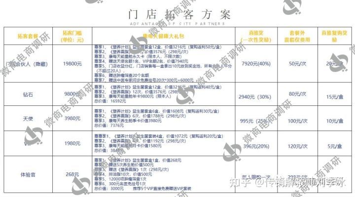 每个等级的代理都可以零售产品设备获取收益,等级不同获得的零售利润也不同,而市代的零售利润高达40%~70%。为了帮助代理们拓客,康每天还专门设置了一套门店拓客方案,从268元~19800元设置了五个等级的拓客套餐,每个等级包含不同的服务内容,并且设置了20%~40%的推荐奖励和复购返利奖励,以此吸引顾客为门店拉客。
