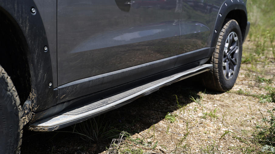 脚踏板是侧面的点睛之笔,虽然不是一台硬派越野车,但从整体车身气质来看,踏板的加入让侧面更加协调,上下车也更加便捷。