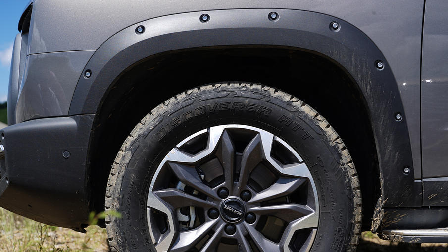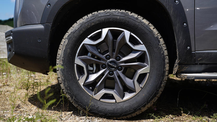 轮毂采用战斧内嵌的造型设计,不同与城市SUV的精致,但却让内部车轮更加饱满,轮胎方面原厂就已经配备了AT胎,在你游玩穿越减少更换轮胎的开销,但随之而来的是油耗的增加,如果经常在城市中行驶需要更换一套车胎。