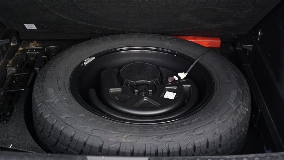 后备厢的空间也算不错,能满足日常家用与简单的越野需求,高度方面稍微有些欠缺,欠缺的原因就是下方配备了全尺寸备胎,没有比这更良心的配置了,在遇到紧急情况时能应对自如。