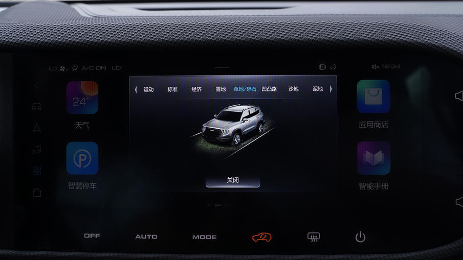 驾驶模式方面,本台车在原有的六种驾驶模式上增加了两种驾驶模式,分别是草地/碎石路面模式与凹凸路面模式,让车辆适应的复杂路况更多。