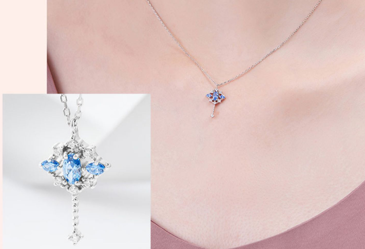 少女心除了颜值,还来源于仪式感。试问那个女孩子不想永远被宠成小孩子。这款项链,设计灵感来源于童话中的仙女棒,寓意守护她的童心,让小仙女心想事成,女孩子收到一定很开心。材质也用的比较讲究,是925纯银镀18K金,再镶嵌施华洛世奇锆石,戴在脖子上bulingbuling的,很好看。一共有粉蓝两个颜色,粉色款少女感满满,蓝色款又很温柔。