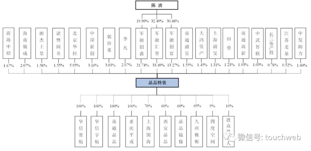IPO前,公司实际控制人陈波为持股平台军融汇智、军融创鑫和军融创富的执行事务合伙人,根据三家合伙企业的合伙协议,陈波代表合伙企业行使合伙企业在晶品特装享有的表决权等权益,陈波控制军融汇智、军融创鑫和军融创富,军融汇智、军融创鑫和军融创富合计持有公司68.50%股份,陈波为公司实际控制人。