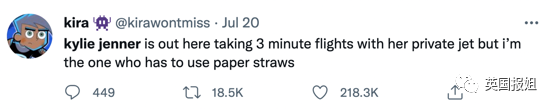 “凯莉·詹娜坐着私人飞机的3分钟航班,而我才是用纸吸管的人。”