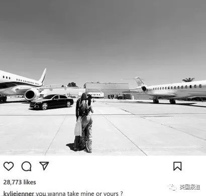 上周凯莉的多段超短途飞行被全网抨击后,她没有正面回应,反而在飞12分钟的这同一天,在自己的社交媒体上传了一张和男友Travis Scott的合照,写了一句非常凡尔赛的配文: