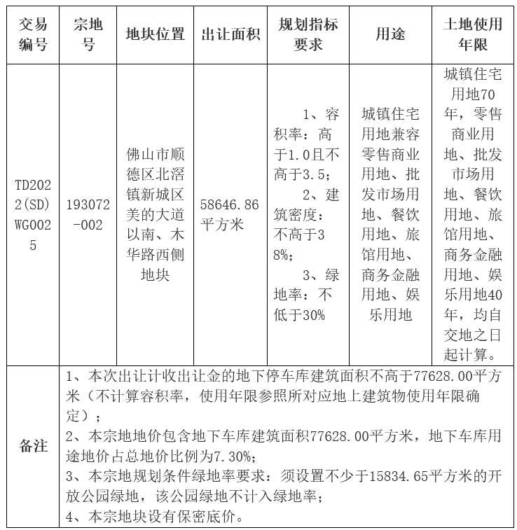 7月25日,顺德区一宗位于北滘镇新城区美的大道以南、木华路西侧商住地将于上午10时迎来出让,占地58646.86㎡,起拍价236054万元,折合楼面单价约11500元/㎡。