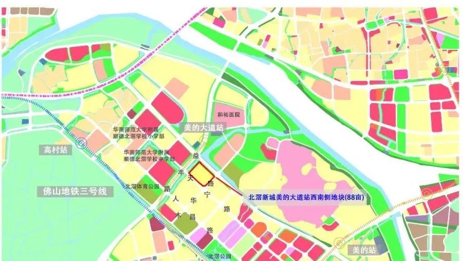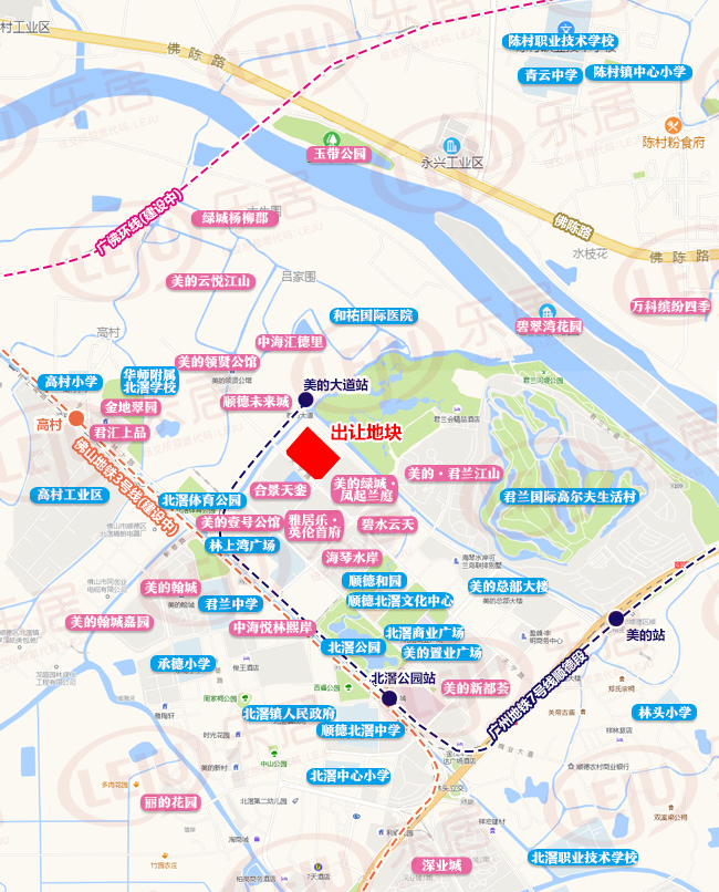 从地图看,地块紧邻广州7号线西延顺德段首站美的大道站,周边有合景天銮、绿城杨柳郡、金地翠园、顺德未来城、中海悦林熙岸等楼盘,一路之隔的中海汇德里保持着北滘地价纪录,去年起拍价1.5万/㎡,最终成交地价超1.8万/㎡,将主打广州刚需客。